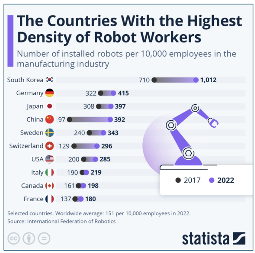 High US wages for skilled workers constrain robot adoption in manufacturing. “Many less productive US manufacturing firms could buy a robot, but couldn’t attract the talent to program it.” The US can’t “emulate” the low-wage, high-skilled China model.