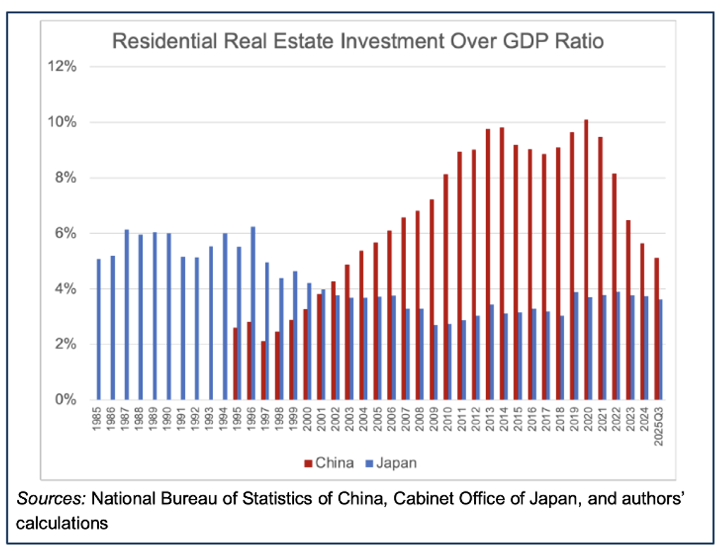 Japan’s prolonged recession was likely driven by the interplay of slowing returns to investment, soft consumption, and negative sentiment that reinforced these weaknesses. With some structural and cyclical characteristics closely resembling Japan’s pre- and post-bubble conditions, China appears to be in the middle stages of a multi-year correction. China’s post-boom adjustment is unfolding in a more difficult macroeconomic and demographic context than Japan’s. That said, China still possesses several economic and institutional advantages that could help cushion the blow of a prolonged real estate downturn. In Japan’s post-bubble era, the country’s productivity growth was considered a binding constraint, a factor that does not appear to limit China in the same way. Most crucially, China possesses a state-dominated financial system backed by implicit government guarantees and a highly proactive policymaking apparatus capable of large-scale interventions, which have thus far prevented the crisis from precipitating a financial sector breakdown.